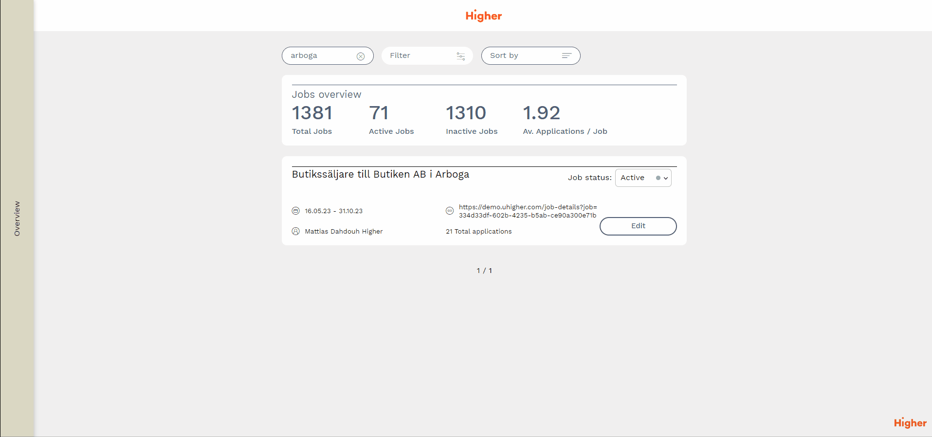⚠️ In order for it to work according to the above example, it assumes that there is a trigger configured on the status column "Rejected via Email". A user with HR authorization in Higher can check this under Menu > Settings > HR settings > Status flow.