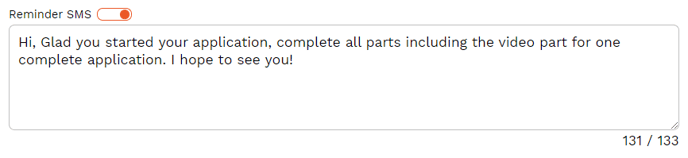Reminder SMS give candidates the chance to resume their application if they have not completed it. You decide what the text should say.