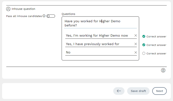 ⭐You can have multiple answer options and determine the maximum number of answers the candidate can choose. A typical example of this would be to allow the candidate to choose which department or location they want to work in.