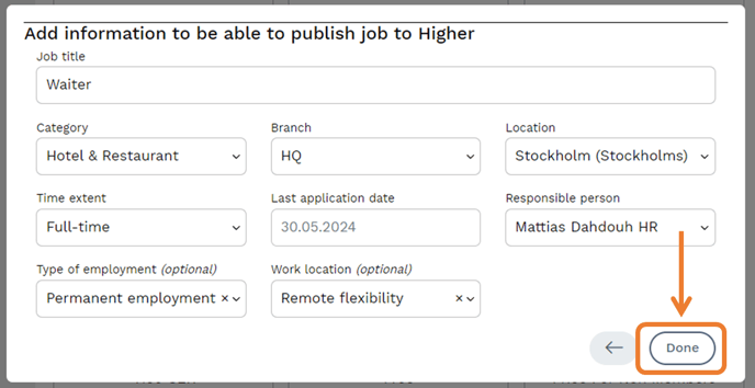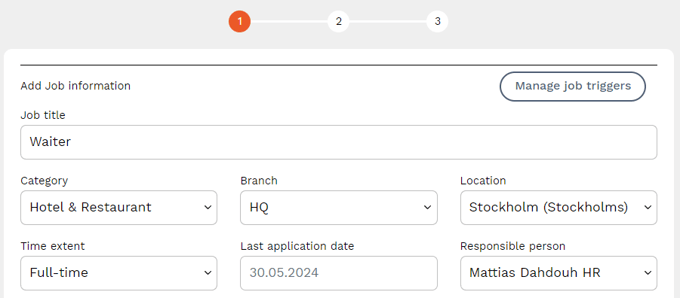 - Responsible person - who is responsible for the advert? This also determines who gets the job visible in their dashboard.