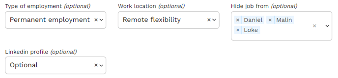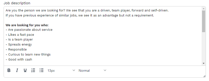 Under job description, you fill in information about the service. E.g. requirements you set, what you offer the candidate, what the job entails, etc.