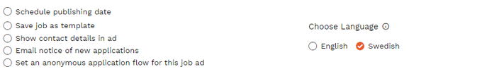 - Show contact details in advert - this shows the responsible person's name and email address. Keep in mind that this can create more work as candidates choose to email their application instead of doing it via the tool.