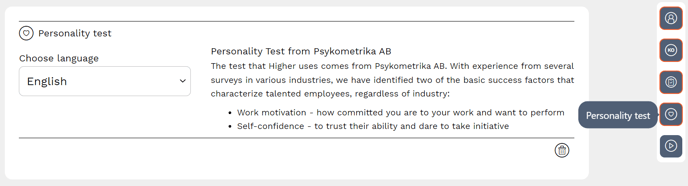 The personality test (read more here) measures work motivation and self-confidence. The test consists of about 30 statements where the candidate ranks the options from