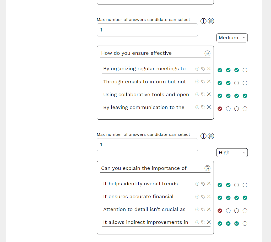 - All generated questions that you use, will be saved in the library in case you want to re-use previously generated questions.