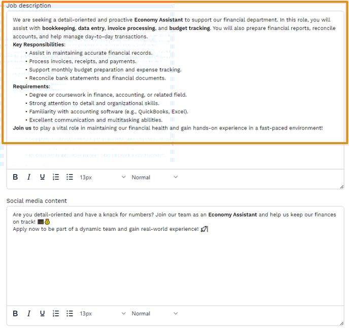 Same goes for the job description, make it short but descriptive, so the AI and your applicants can easily understand the role and requirements.