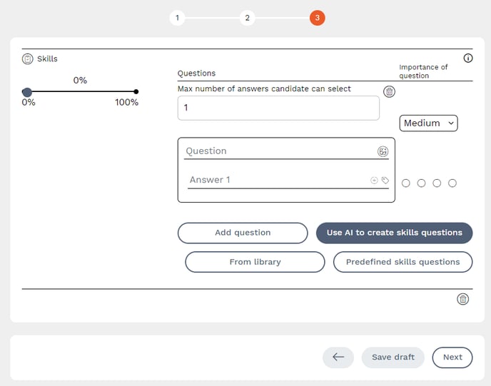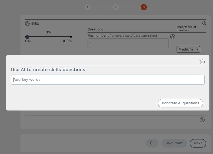 - It will generate and amount between 5-15 questions and once generated, you can't regenerate new questions for that specific job or template.