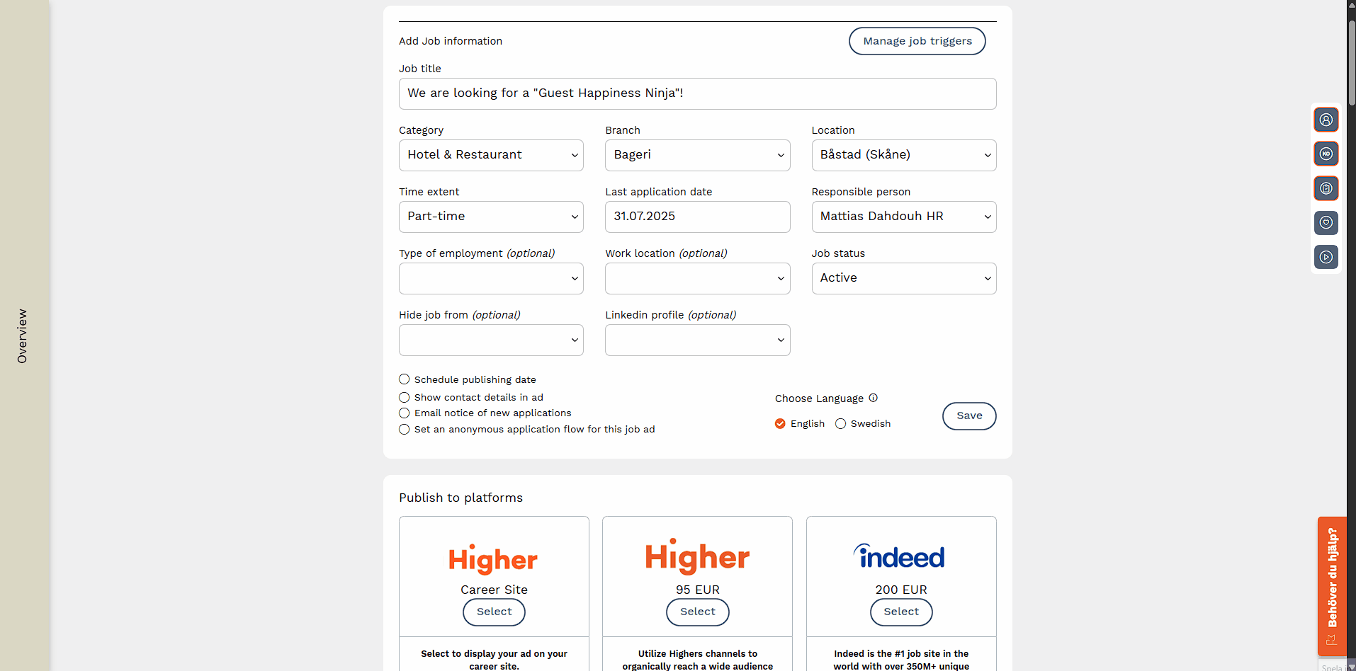 When posting a job ad in Higher, you can easily select different job titles for each platform. That way, you get the right message in front of the right audience, no matter where you're advertising.