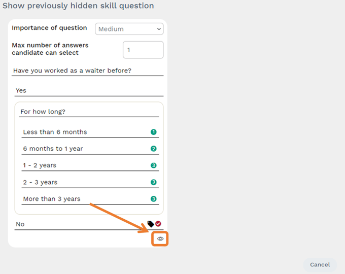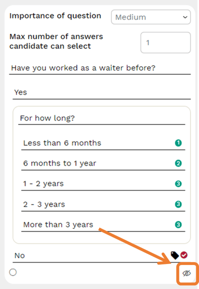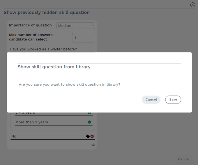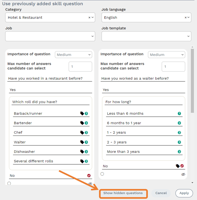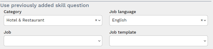 All questions entered into job templates and job postings are saved in the question library for you to reuse. The questions can be filtered based on category, ad, template or language. If a question is no longer relevant, you can hide it. Only the user who created the question can hide it.