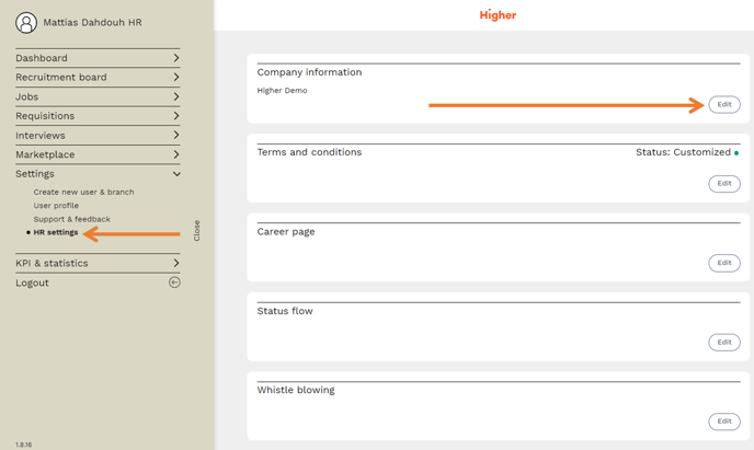 To change company information in Higher, you need to navigate to