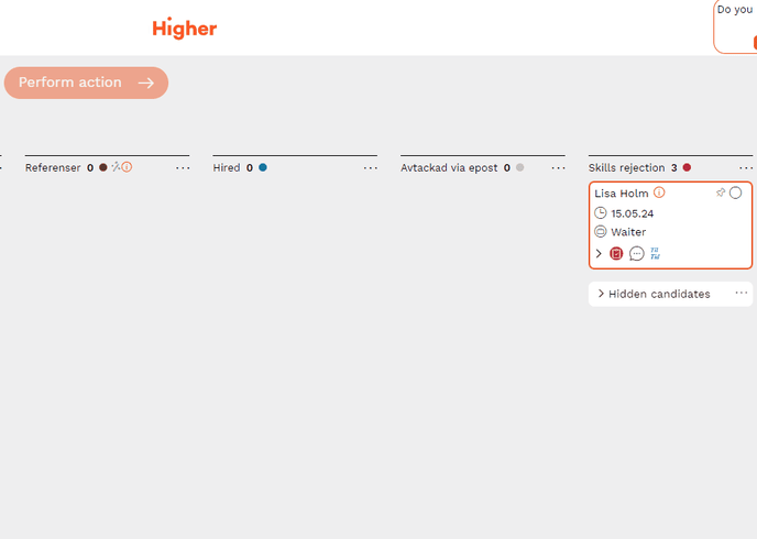 If you feel that there are too many candidate cards visible on the recruitment board, you can hide them.