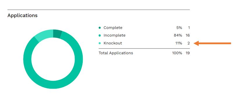 You can see the number of candidates who didn't make it pass the knock-out questions under KPIs and Statistics.