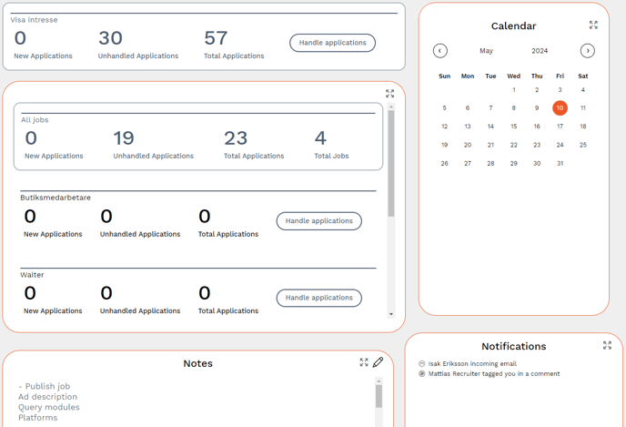Notification Here you will receive notifications when one of your colleagues mentions you in a comment, when a candidate replies to a mailing or uploads a requested document. The notifications stay there until they are marked as read.