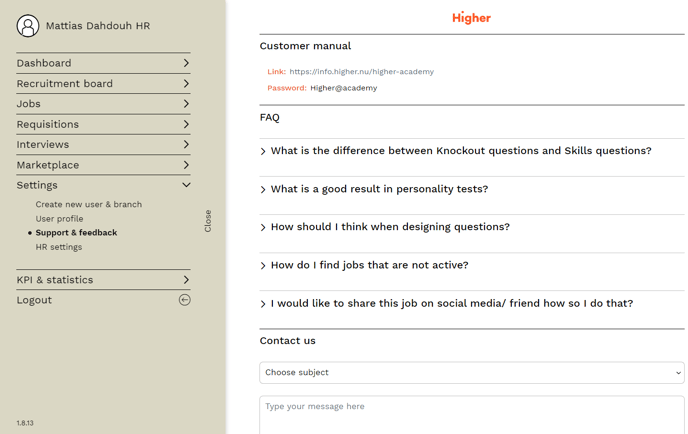 - Here you can access the login details to Higher Academy and contact us at Higher via email.