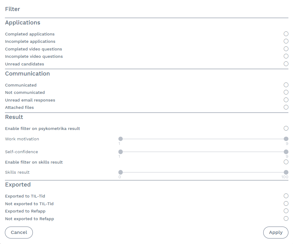 If you have RefApp and/or a connection to TIL-Tid, you can filter candidates based on whether an export has been made or not.