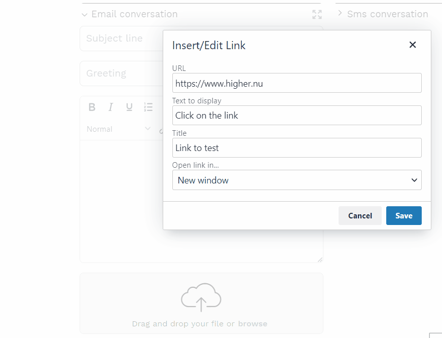 Use: If you use various tests or surveys outside Higher as part of your recruitment process, you can invite the candidate to participate in these using templates. Formulate an email inviting the candidate to complete any test, survey etc. and include the link they should click on.