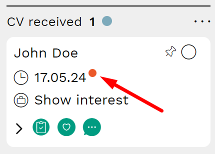 In the recruitment board, the candidate card will show an orange dot to those candidates who uploaded their CV.