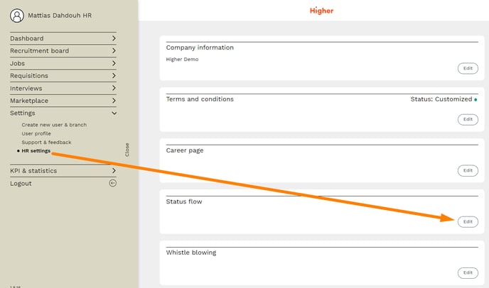 Overview > Settings > HR Settings > Status Flow