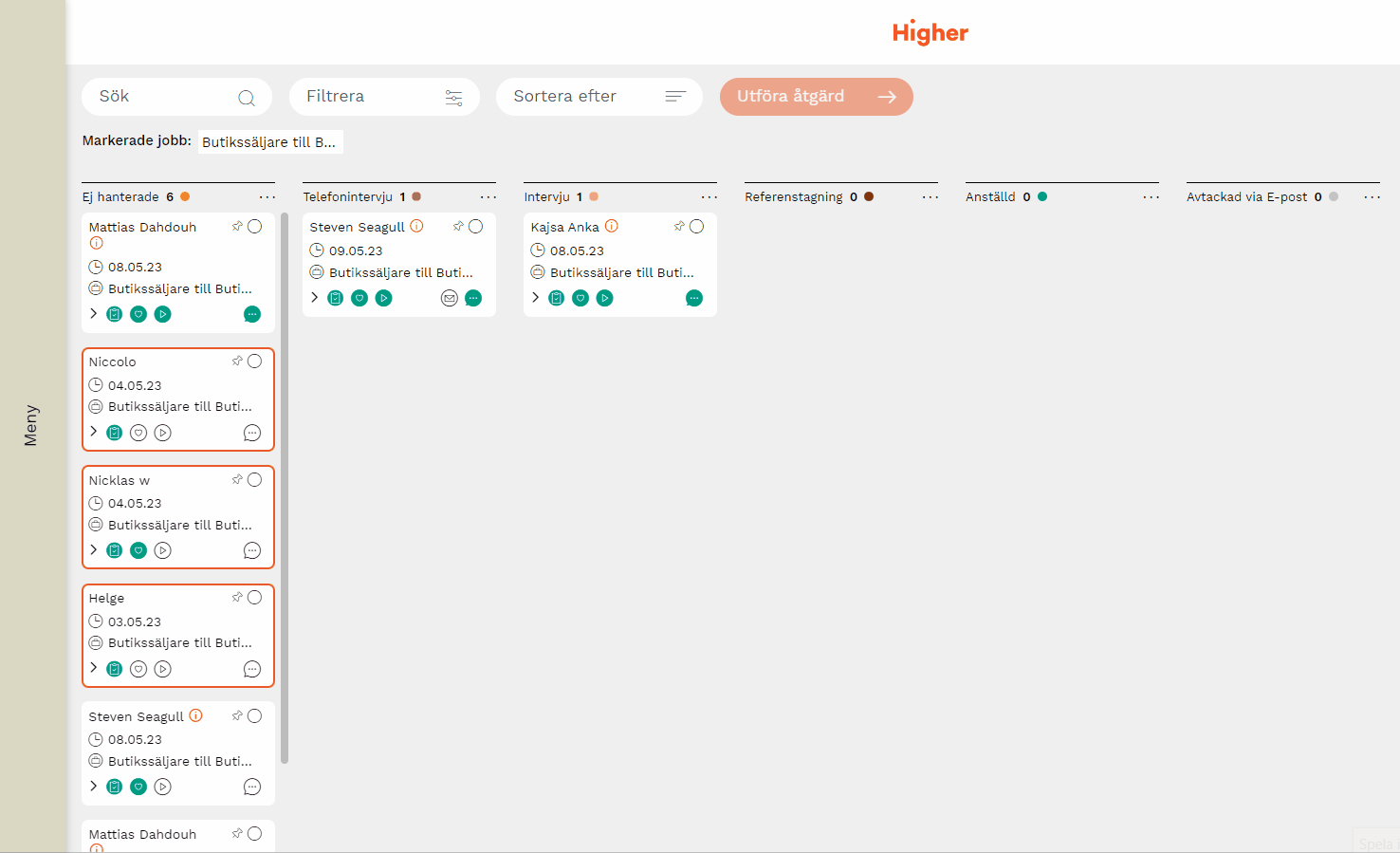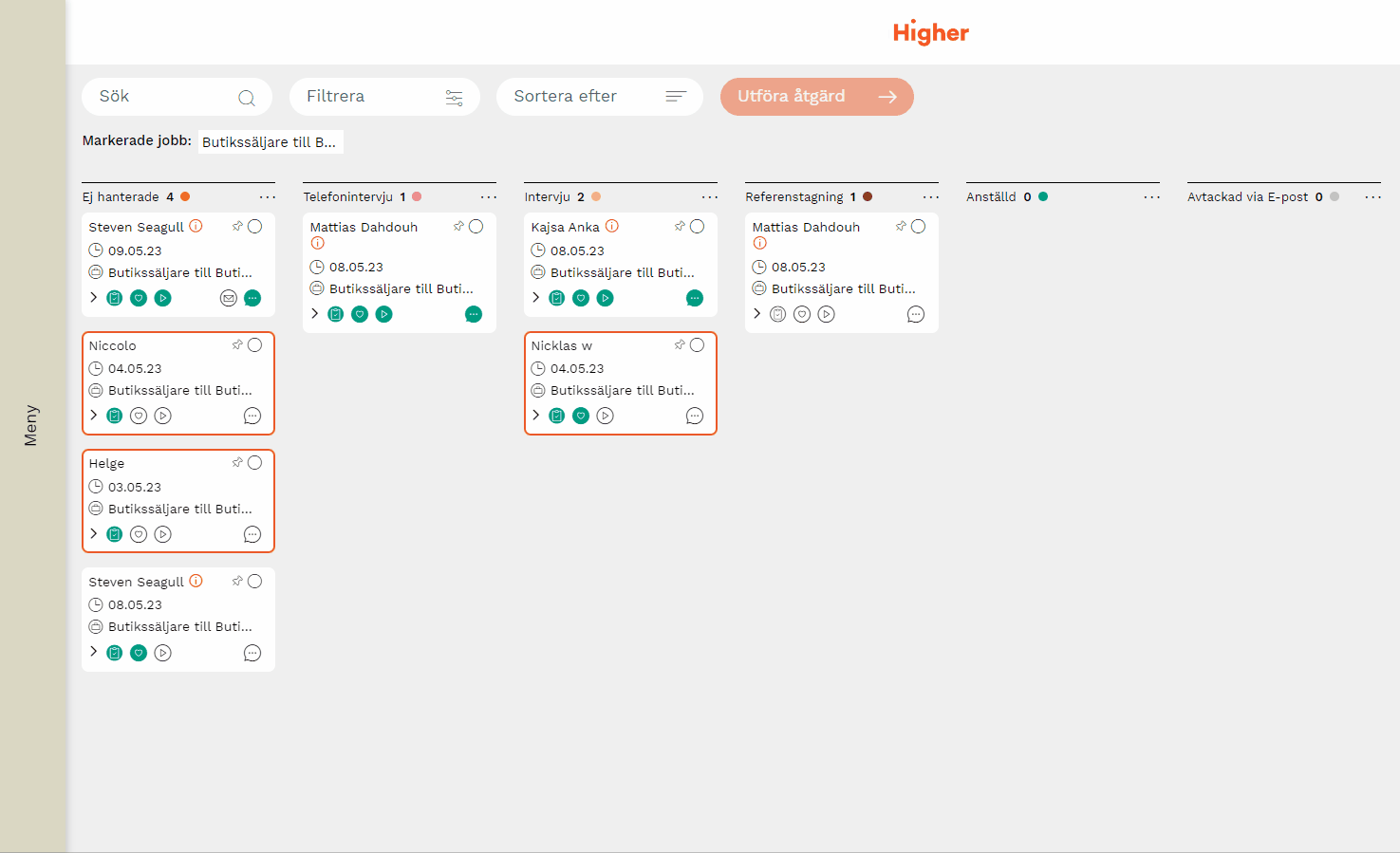 För att hantera kandidater i Higher går du till rekryteringstavlan. Det finns två sätt: