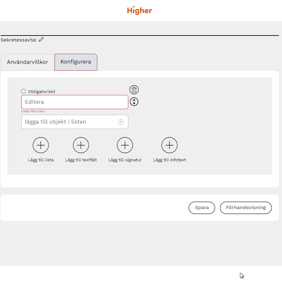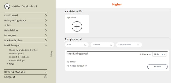 ⚠️Denna funktion måste aktiveras av Higher support. Kontakta support@higher.nu om du vill veta mer om Avtal.