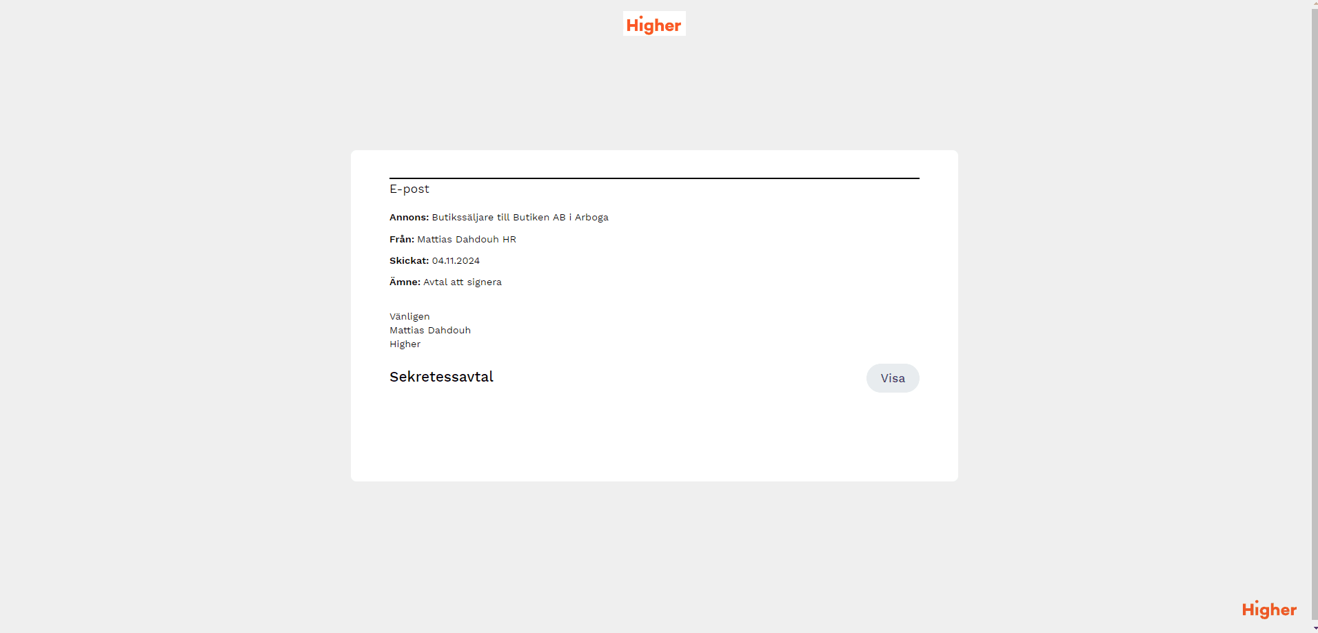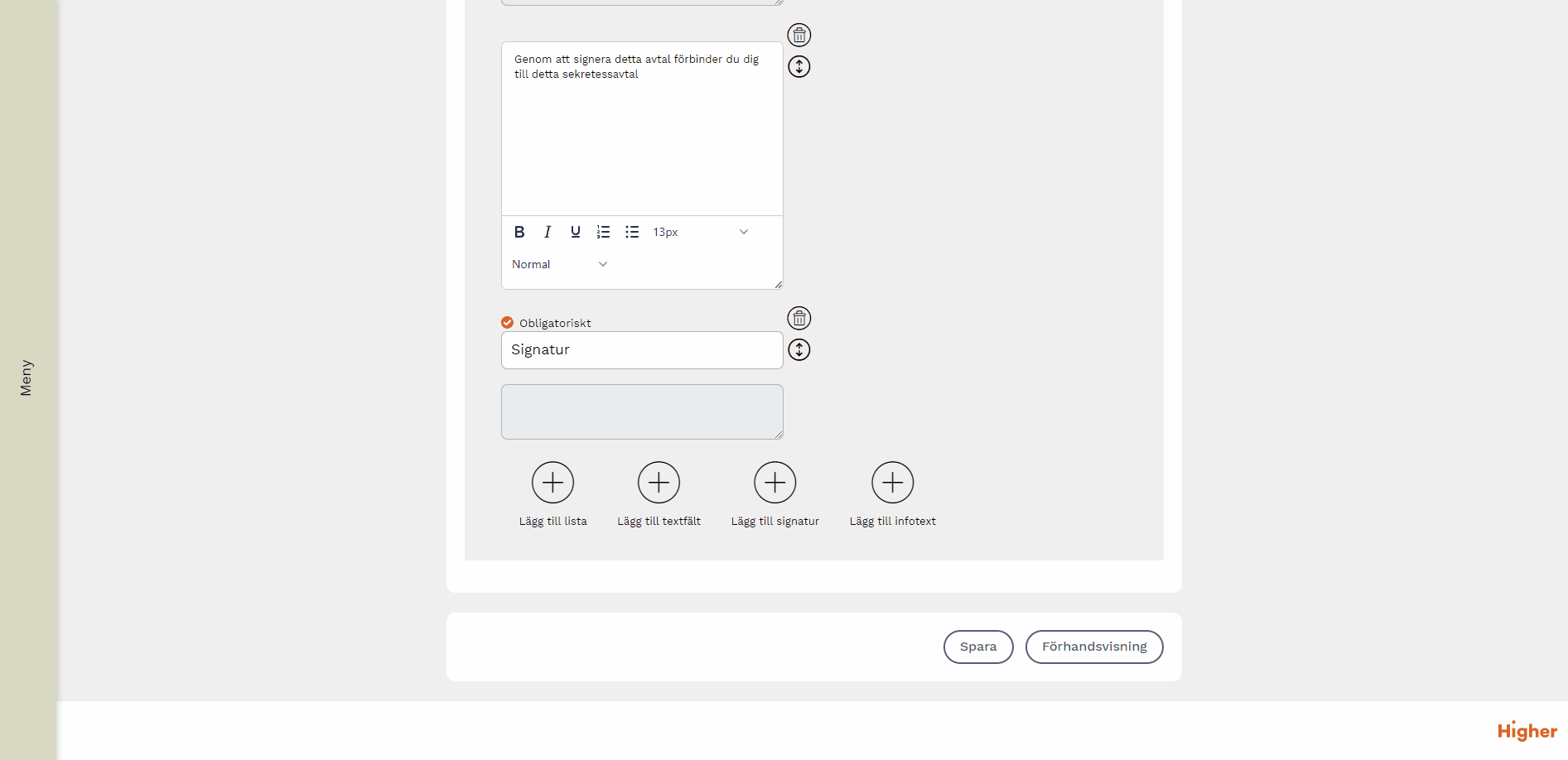 I Higher kan du skapa avtal som kan signeras digitalt av mottagaren.