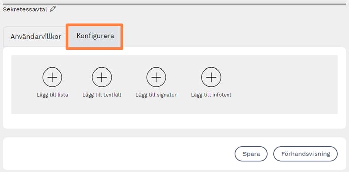 När du är klar med avtalsvillkoren trycker du på "Konfigurera" för att designa ditt avtal.