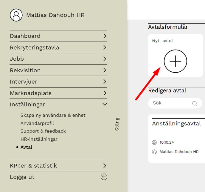 För att skapa ett nytt avtal trycker du på "Nytt avtal"
