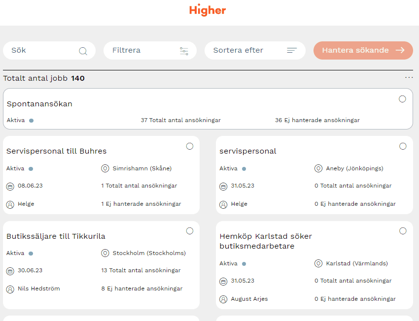 I rekryteringstavlan och under KPI:er & statistik kan du också filtrera fram jobbannonser baserat på vilka enheter de är knutna till.