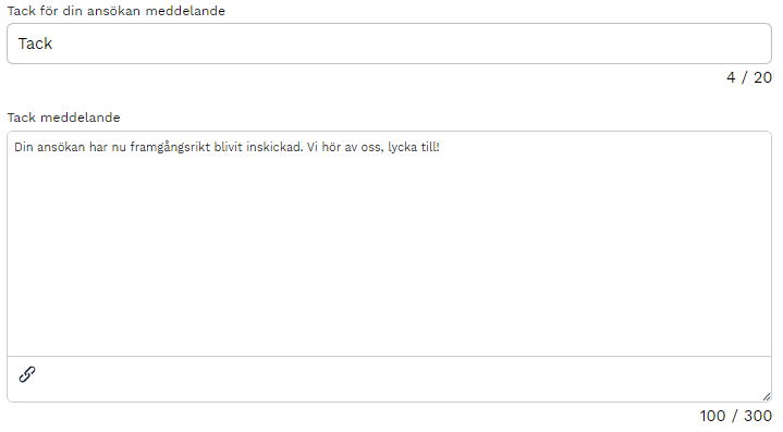 Kandidaten får en bekräftelse när de har skickat in sin ansökan. Du kan bestämma vad som stå i detta meddelanden här.
