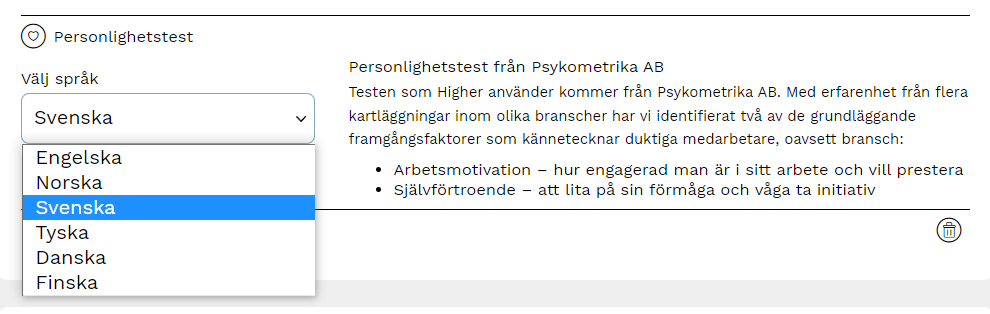 - Tänk på att om ni använder personlighetstest så är det lagom att använda ca 10-15 frågor i skills/CV delen