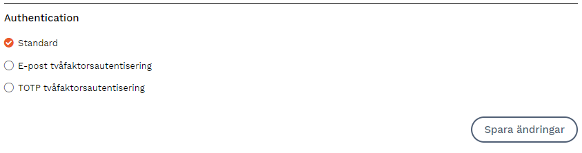 • Standard = Ingen 2FA
