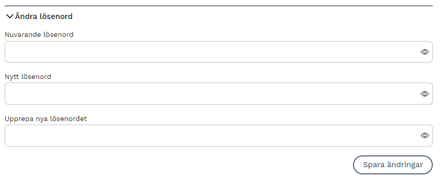 Om du vill ändra ditt lösenord gör du det här. Notera att "Ändra lösenord" har en egen "Spara ändringar"-knapp.