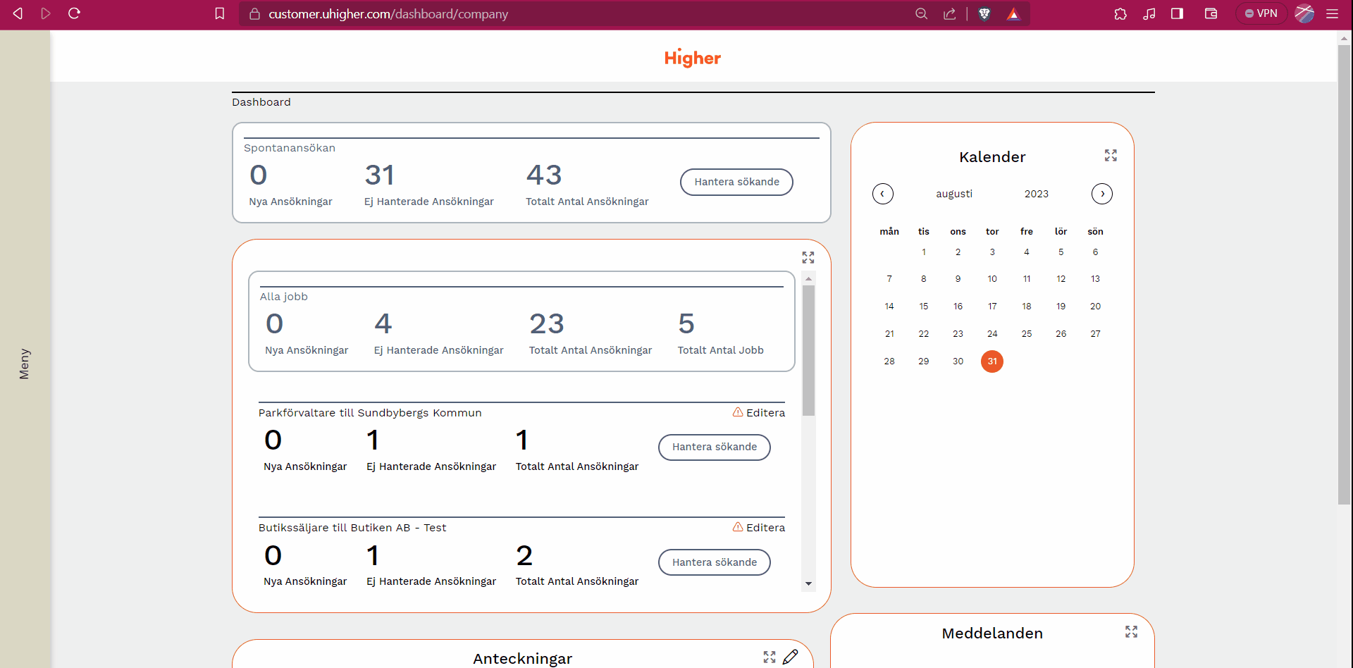 Higher kommer att låsa kolumnen "Automatiskt avtackad" för redigering av systemtekniska skäl. Detta innebär att man inte kommer kunna flytta på kandidater till eller från denna kolumn efter 1a Oktober 2023. Vi kommer också att byta namn på den till "Skills avtackning" för att förtydliga vilken funktion den uppfyller i Higher.