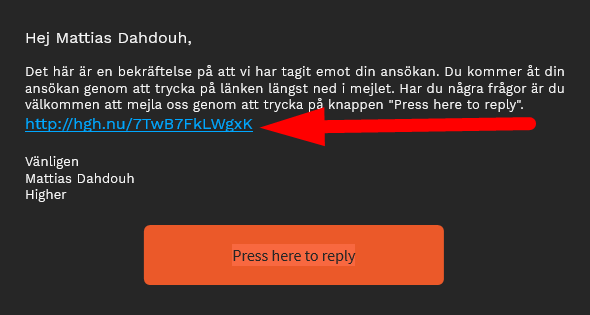 En del arbetsgivare skickar ett bekräftelsemejl med en länk till din ansökan. Om du har fått ett sådant mejl kan du fortsätta genom att klicka på länken där.