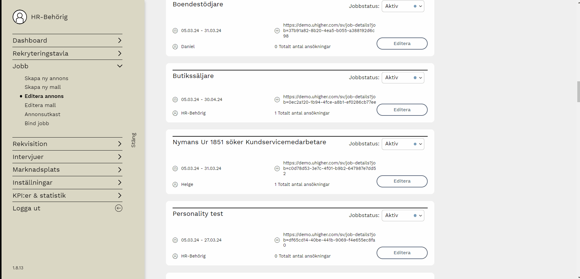 Skrolla längst ned på sidan och tryck på Kopiera Annons. En kopia på din annons skapas, notera att Higher lägger till "- skapad kopia" efter jobbtiteln på din nya annonskopia och detta vill du ta bort (se GIF).