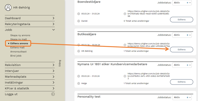 Navigera till Meny > Jobb > Editera annons > Editera för den jobbannons du vill kopiera