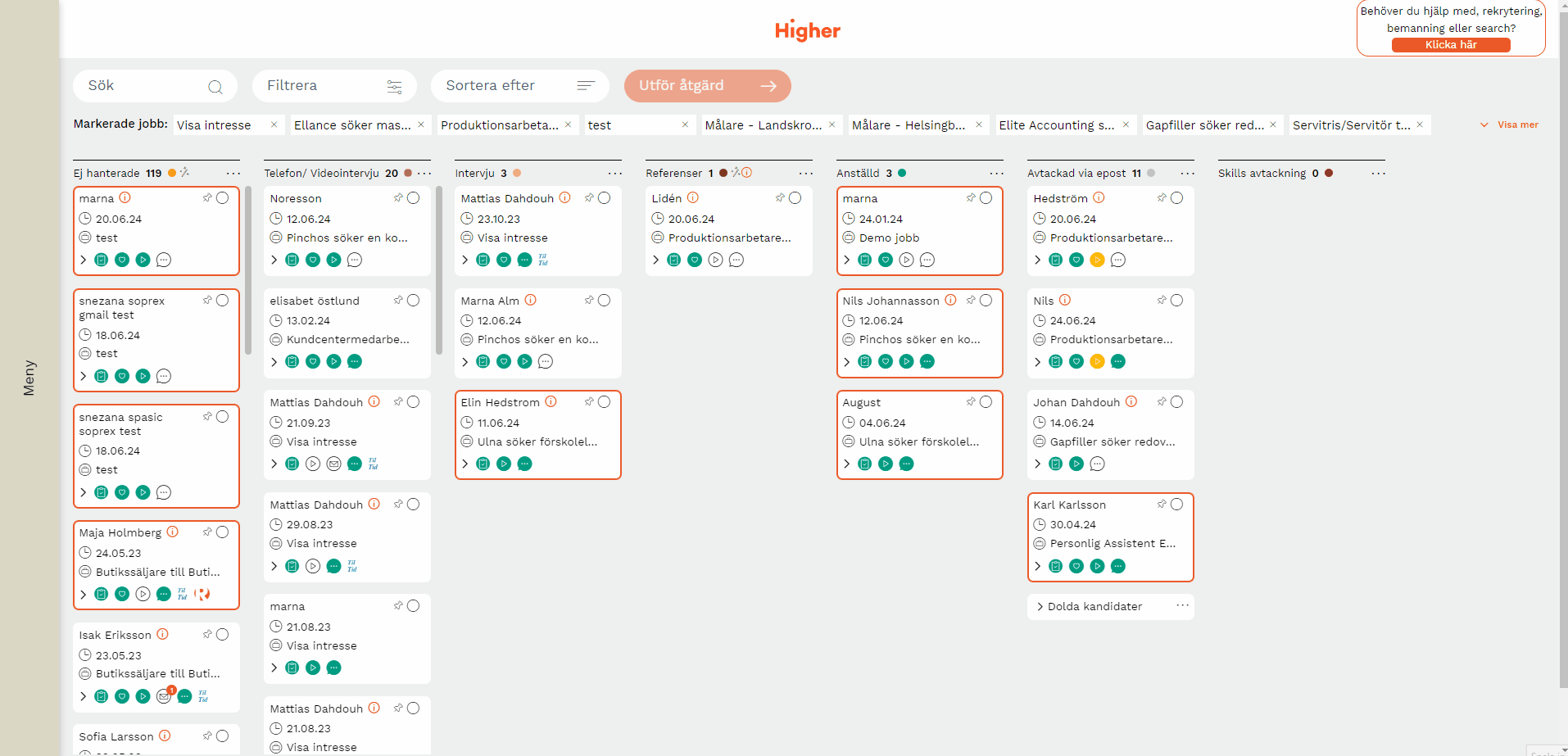 Det är också möjligt att filtrera kandidater med hjälp av namn eller taggar. Genom att använda taggar kan du kombinera flera kriterier för att hitta rätt kandidat för jobbet.