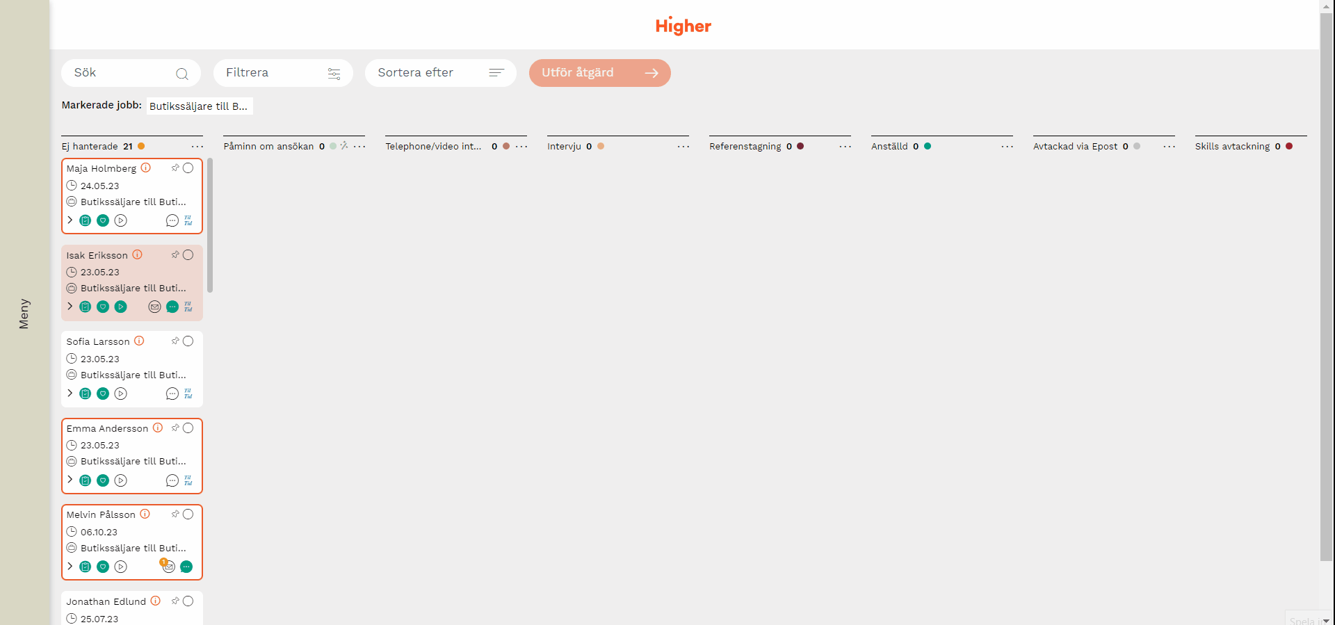 Med hjälp av filterinställningar kan du filtrera fram kandidatkort baserat på villkor.