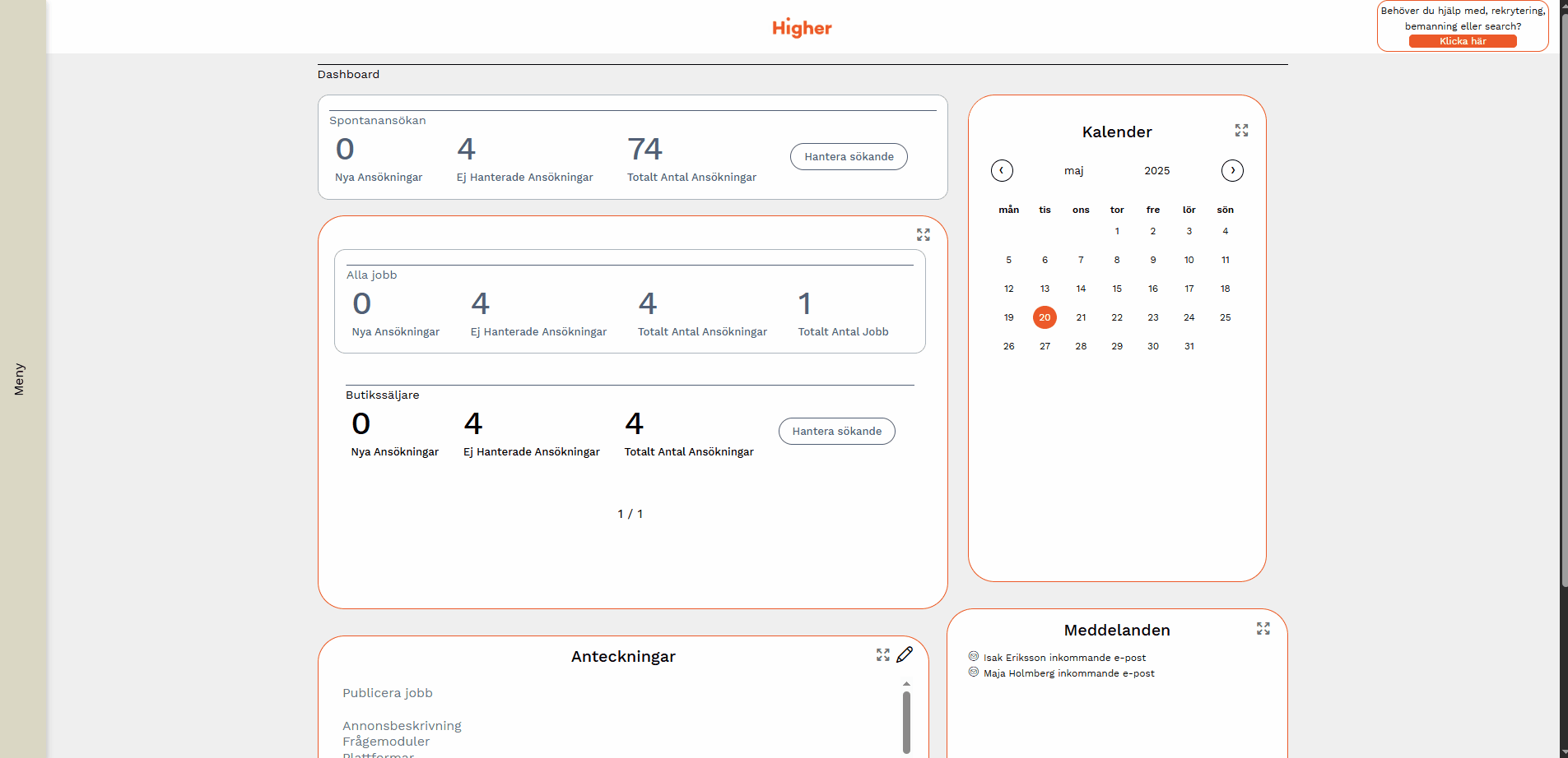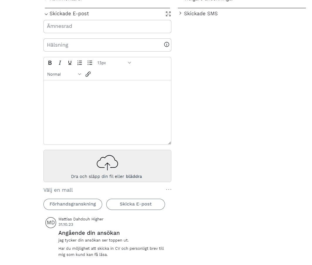 På kandidatkortet visas de två senaste meddelandena med en kandidat. För att se äldre meddelanden, klicka på expandera-symbolen. Efter utvidgning kan du scrolla nedåt eller använda nyckelordssökning för att hitta specifika meddelanden.