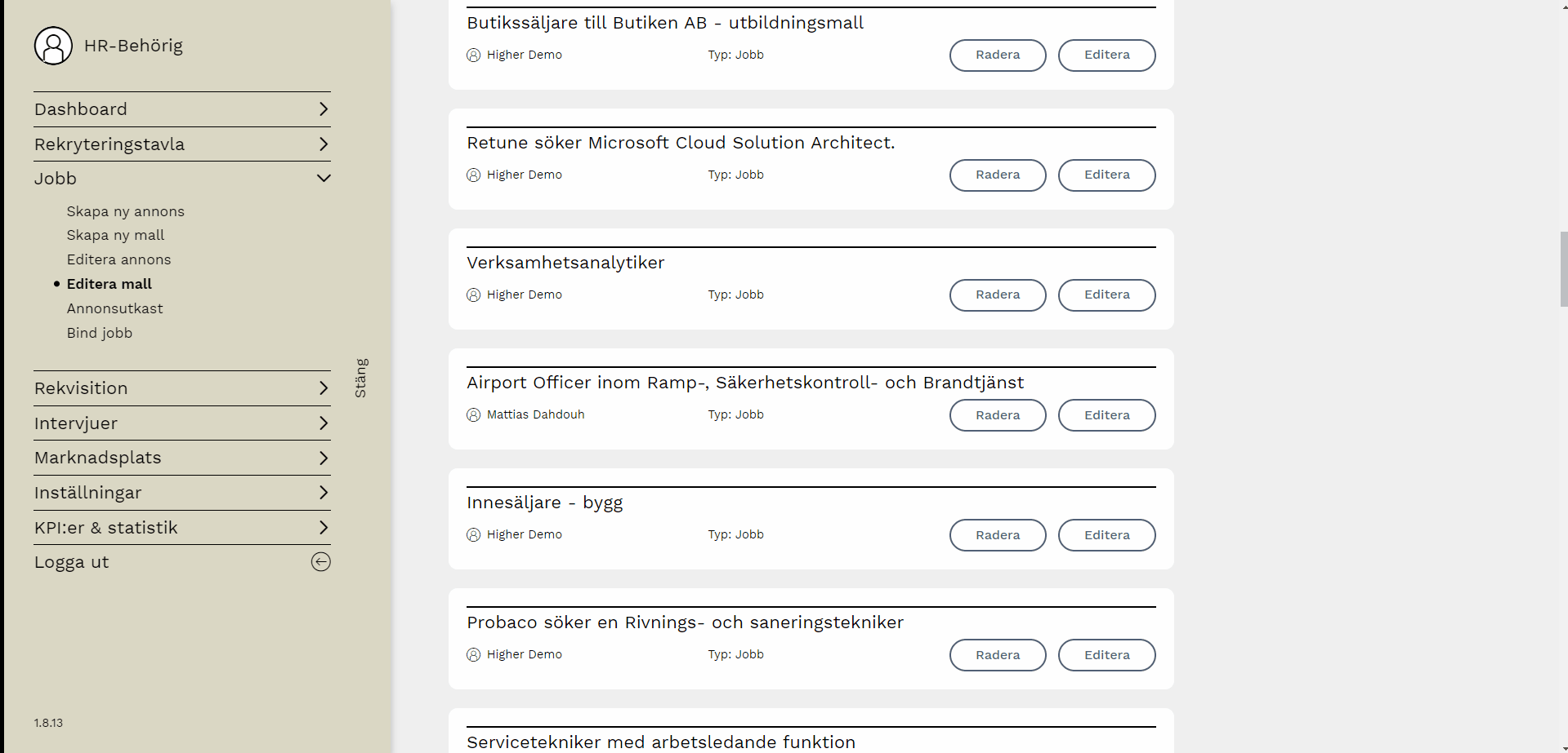 Skrolla längst ned på sidan och tryck på Kopiera Mall. En kopia på din jobbmall skapas, notera att Higher lägger till "- skapad kopia" efter jobbtiteln på din nya mallkopia och detta vill du ta bort (se GIF).
