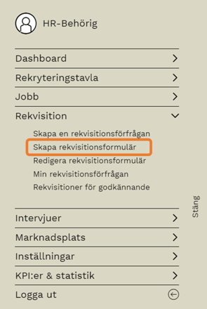 Dem som kan skapa rekvisitionsformulär är användare med HR-behörighet.