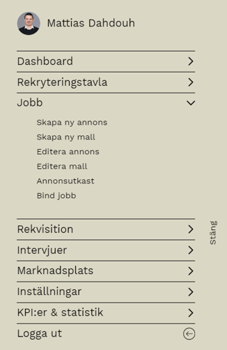 1. Navigera till Meny > Jobb > Editera annons/skapa ny annons